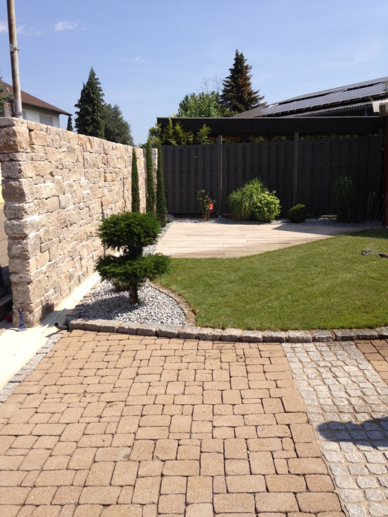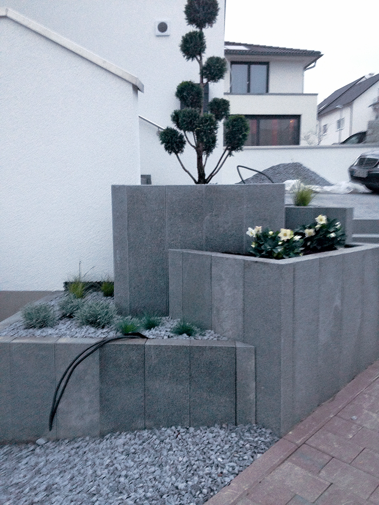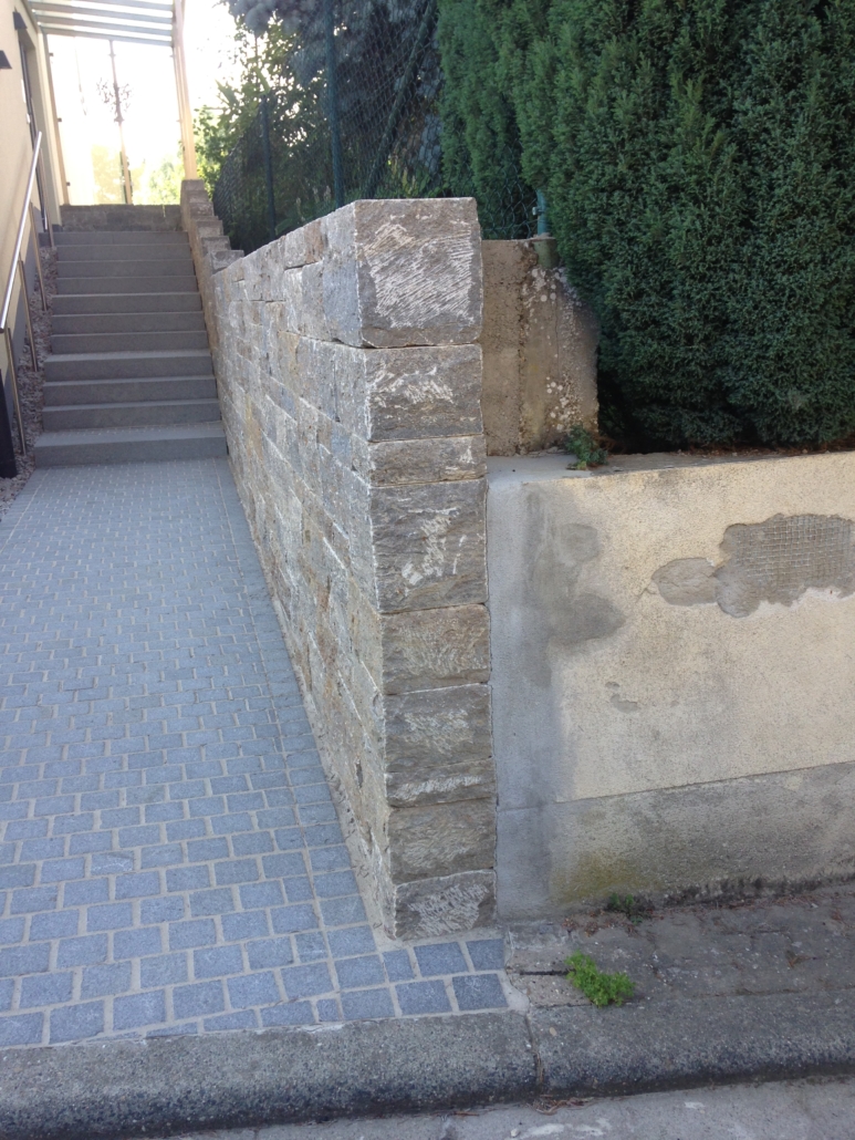 Selbstverständlich mauern wir auch mit anderen Steinarten wie z.B. Betonsteinen und schaffen so optisch ansprechende Abgrenzungen oder Einfriedungen.